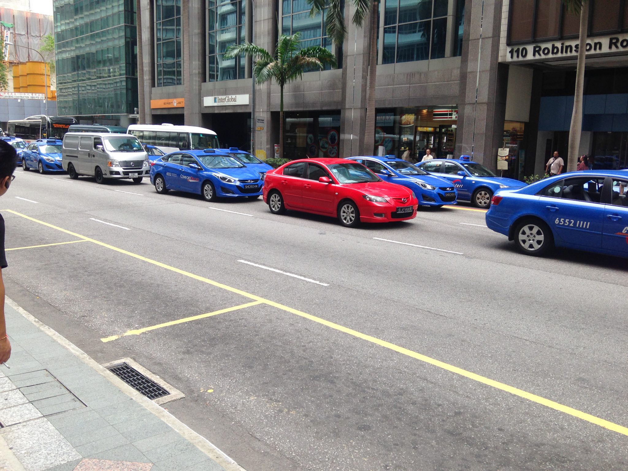 Sometimes these apps mean the drivers are distracted from driving. Although calling and texting is not allowed while driving in Singapore (as it is in The Netherlands), it is not against the law to accept rides as long as their phone is mounted on a holder. But, because of these apps, all taxis (from all companies) have the same change to find a ride and by calling, only one company can accept your order.